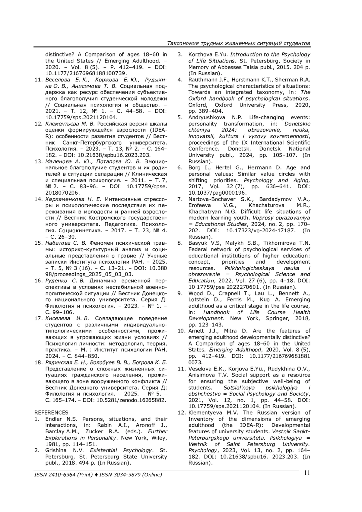 7. Нартова-Бочавер С. К., Бардадымов В. А., Ерофеева В. Г., Хачатурова М. Р., Хачатрян Н. Г. Трудные жизненные ситуации обучающейся молодежи // Вопросы образования. - 2024. - № 2. - P. 170-202. -. DOI: 10.17323/vo-2024-171877