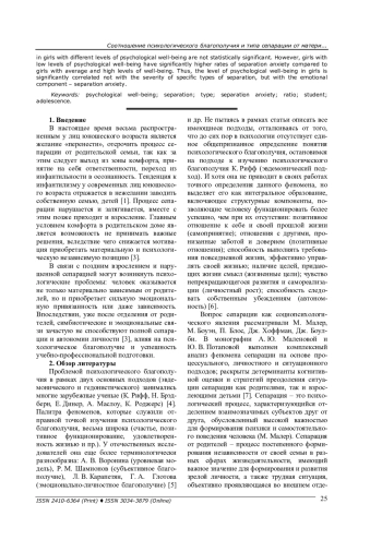 14. Кошелева Ю. П., Фастова Д. А. Развитие личности: сепарация, личностная зрелость и психологические благополучие // Мир науки. Педагогика и психология. - 2025. - Т. 13, № 1. - URL: https://mir-nauki.com/PDF/68PSMN125.pdf (дата обращения 21.09.2025).