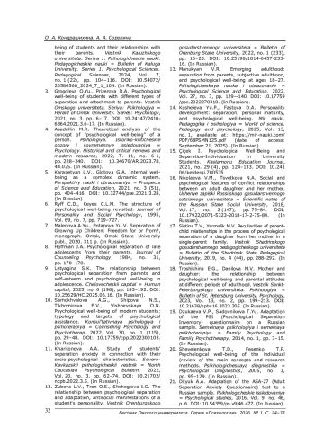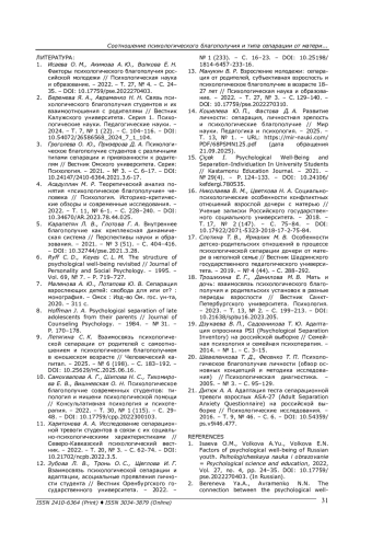 15. Çiçek İ. Psychological Well-Being and Separation-Individuation In University Students // Kastamonu Education Journal. - 2021. - № 29(4). - P. 124-133. - 10.24106/ kefdergi.780535. DOI: 10.24106/kefdergi.780535