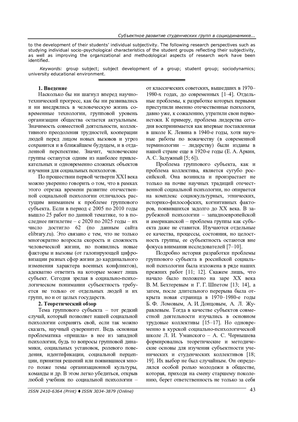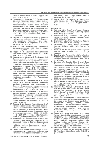 12. Гайдар К. М. Социальная психология группового субъекта: аналитическая ретроспектива и прогностическая перспектива // Социальная психология личности и группы в трансформирующейся России: материалы Всероссийской научно-практической онлайн-конференции (Курск, 16-17 декабря 2021 г.). - Курск: Изд-во КГУ, 2021. - С. 39-43.