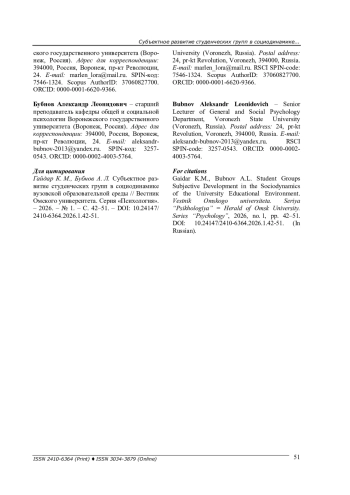 26. Антопольская Т. А., Алябьева Т. Р. Актуализация групповой субъектности у студентов-психологов в условиях образовательной среды вуза // Вестник Воронежского государственного университета. Серия: Проблемы высшего образования. - 2025. - № 3. - С. 30-34.
