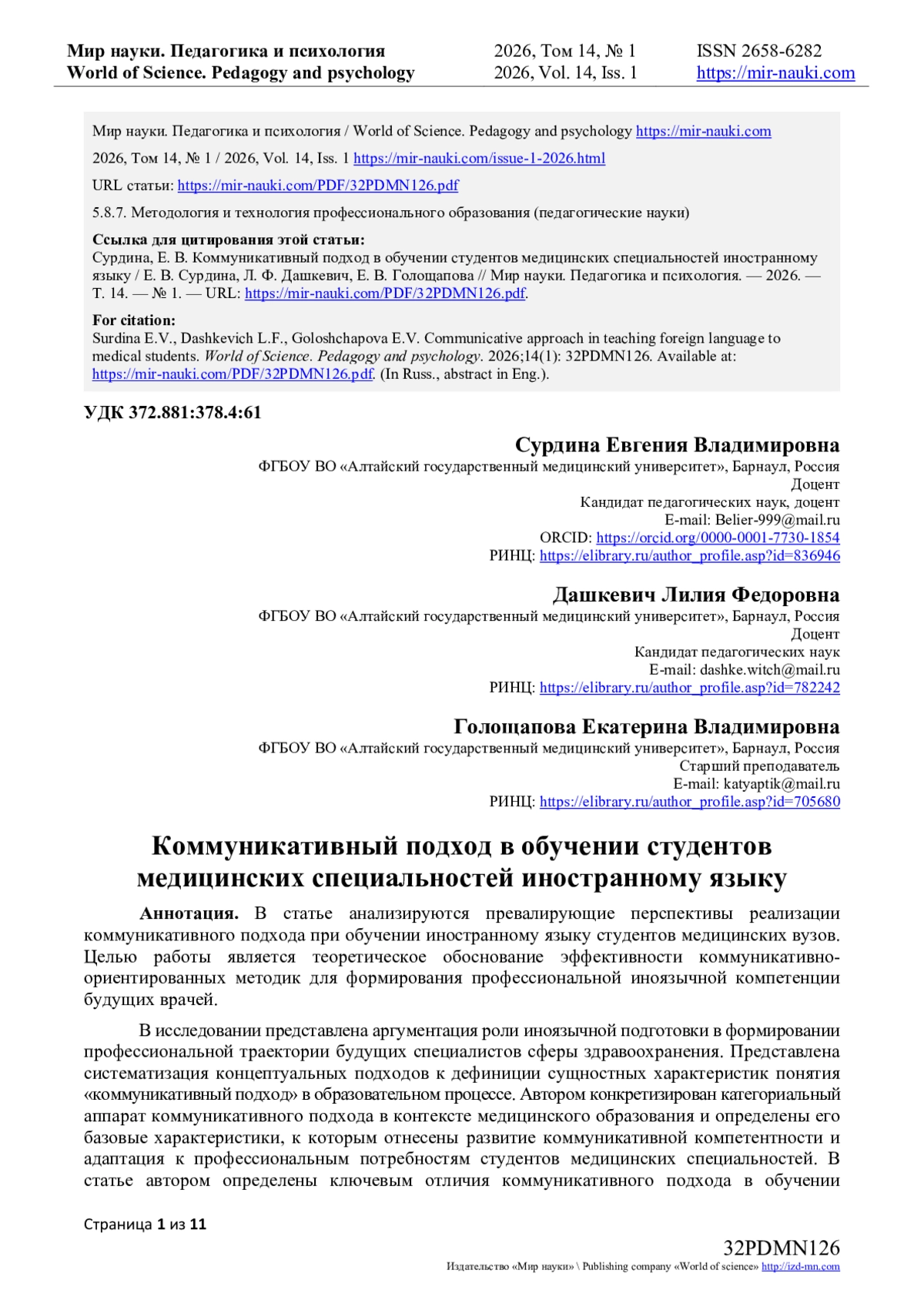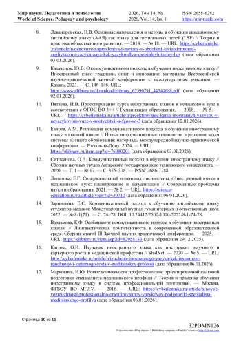 https://cyberleninka.ru/article/n/izuchenie-inostrannogo-yazyka-kak-instrumentnauchnogo-i-kariernogo-rosta-v-meditsinskoy-professii (дата обращения 06.01.2026).