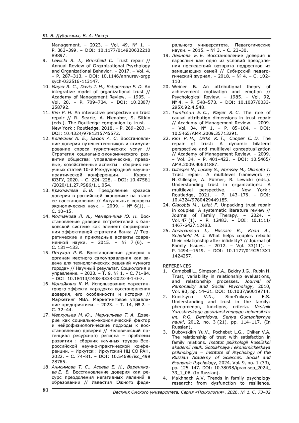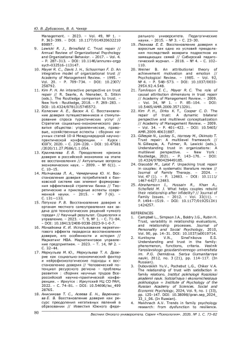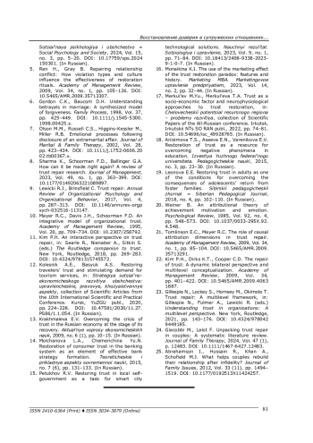 24. Giacobbi M., Lalot F. Unpacking trust repair in couples: A systematic literature review // Journal of Family Therapy. - 2024. - Vol. 47 (1). - P. 12483. - 10.1111/ 1467-6427.12483. DOI: 10.1111/1467-6427.12483