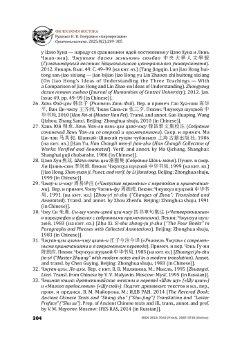 6. Кобзев А. И. Чжуан-цзы. Духовная культура Китая. Энциклопедия. В 5 т. Т. 1: Философия. Ред. М. Л. Титаренко, А. И. Кобзев, А. Е. Лукьянов. М.: Восточная литература, 2006. С. 584-589 [Kobzev A. I. Zhuangzi. In: Titarenko M. L., Kobzev A. I., Lukyanov A. Ye. (eds) Spiritual Culture of China: Encyclopedia. In 5 vols. Vol. 1: Philosophy. Moscow: Vostochnaya literatura, 2006, pp. 584-589 (in Russian)].
