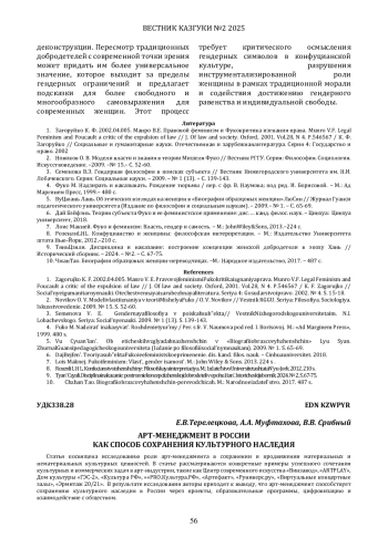 Статья посвящена исследованию роли арт-менеджмента в сохранении и продвижении материальных и нематериальных культурных ценностей. В статье рассматриваются конкретные примеры успешного сочетания культурных и коммерческих задач в арт-индустрии, такие как Центр современного искусства «Винзавод», «ARTPLAY», Дом культуры «ГЭС-2», «Культура РФ», ««PRO. Культура. РФ», «Артефакт», «Руниверс. ру», «Виртуальные концертные залы», «Эрмитаж 20/21». В результате исследования авторы приходят к выводу, что арт-менеджмент способствует сохранению культурного наследия в России через проекты, образовательные программы, цифровизацию и взаимодействие с обществом.