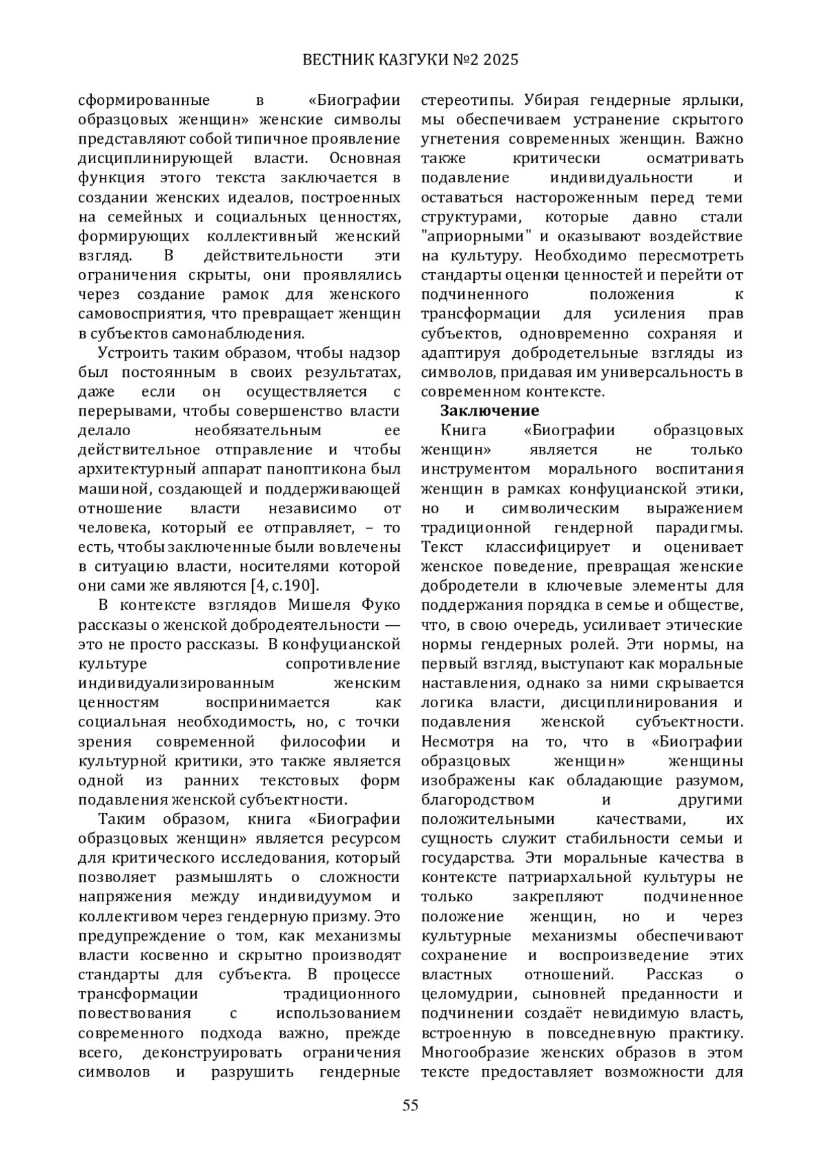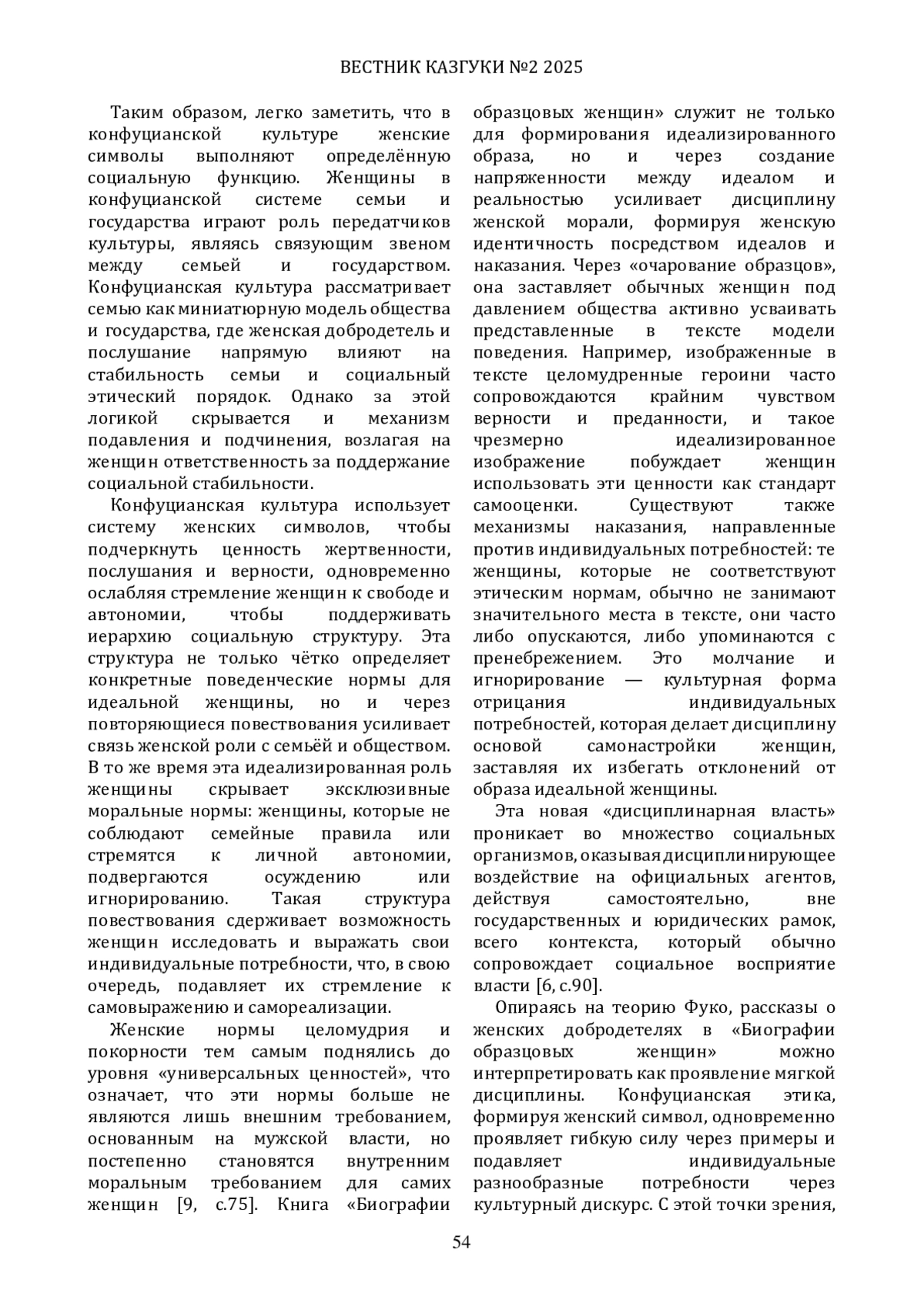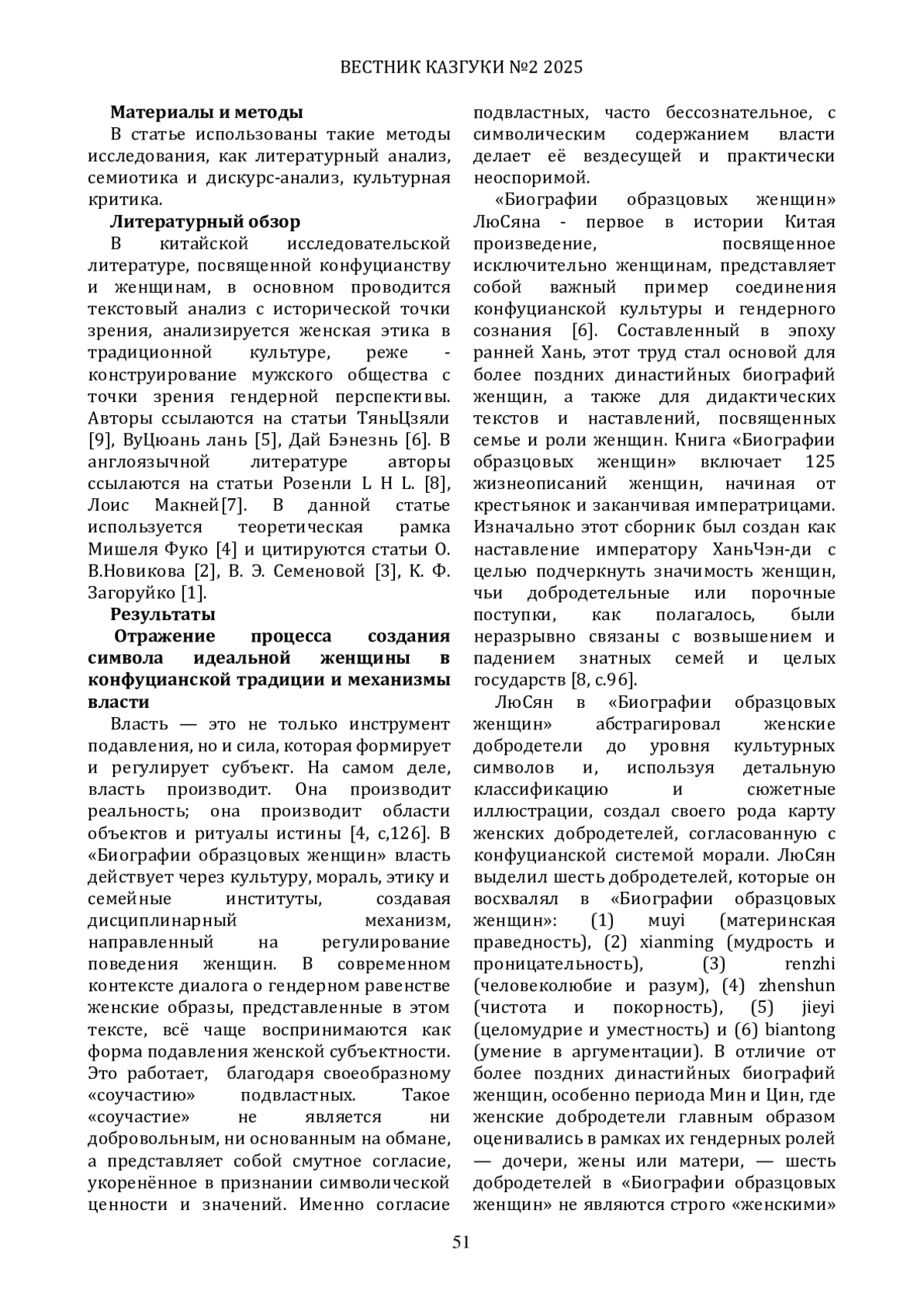 9. ТяньЦзяли. Дисциплина и наказание: построение концепции женской добродетели в эпоху Хань // Исторический сборник. - 2024. - №2. - С. 67-75.