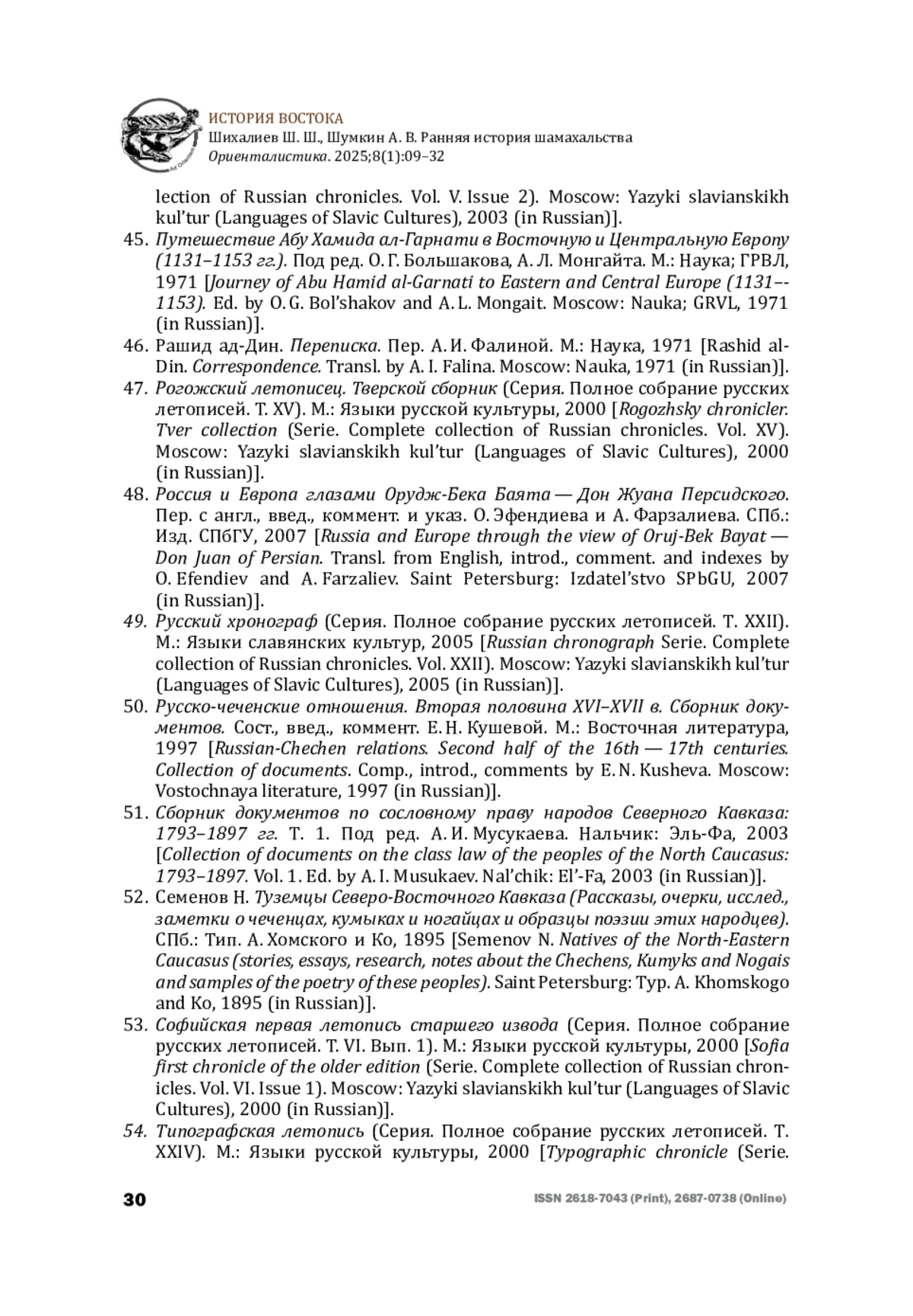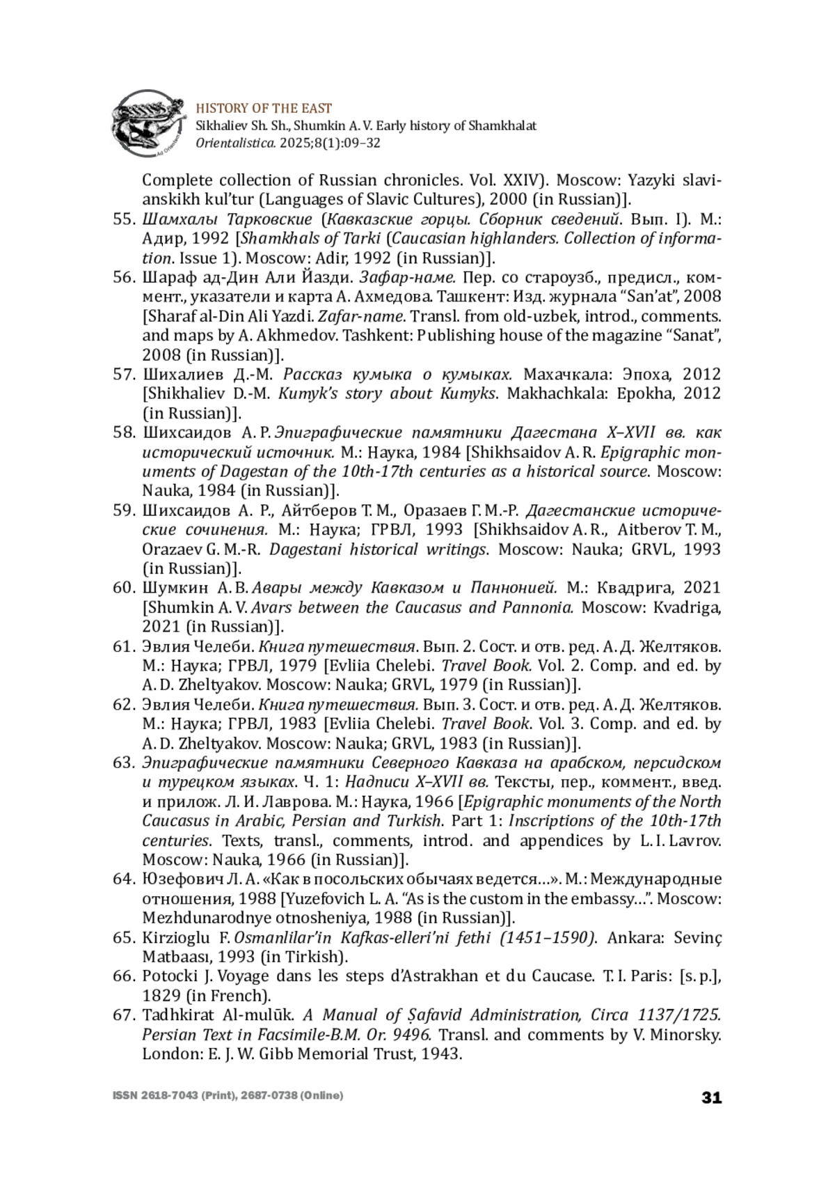 32. Минорский В. Ф. История Ширвана и Дербенда X-XI веков. М.: Восточная литература, 1963 [Minorskii V. F. History of Shirvan and Derbend in the 10th-11th centuries. Moscow: Vostochnaya literatura, 1963 (in Russian)].