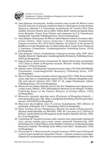 12. Зава Дамдин. Cудлал. Улаанбаатар: Гандантэгчэнлин хийд, 2007 [Zava Damdin. Research. Ulaanbaatar: Gandantegchenlin Monastery Publishing House, 2007] (in Mongolian).