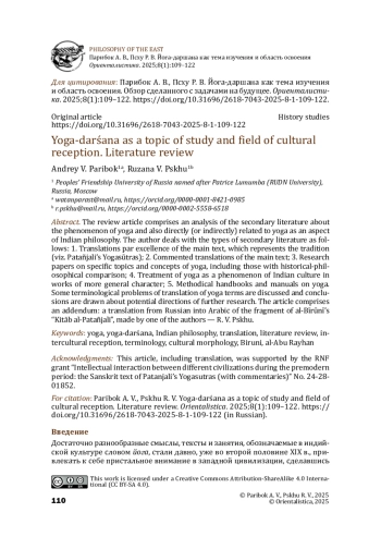 4. Парибок А. В. Необходимость трех профессиональных ракурсов при работе с санскритскими текстами по йоге как философии. Вопросы философии. 2022. № 12. C. 180-191 [Paribok A. V. The Necessity for Three Professional Perspectives in the Interpretation of Sanskrit Philosophical Texts on Yoga. Voprosy Filisofii. 2022. No. 12, pp. 180-191 (in Russian)].