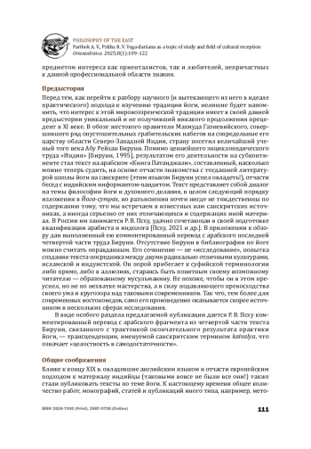 1. Бируни, Абу Рейхан. Индия. Пер. с араб. А. Б. Халидова, Ю. Н. Завадовского. Коммент. В. Г. Эрмана, А. Б. Халидова. Репринт с изд. 1963 г. М.: Ладомир, 1995 [Biruni Abu Reyhan. India. Transl. from the Arabic by A. B. Khalidov, Yu. N. Zavadovsky. Moscow: Ladomir, 1995 (in Russian)].