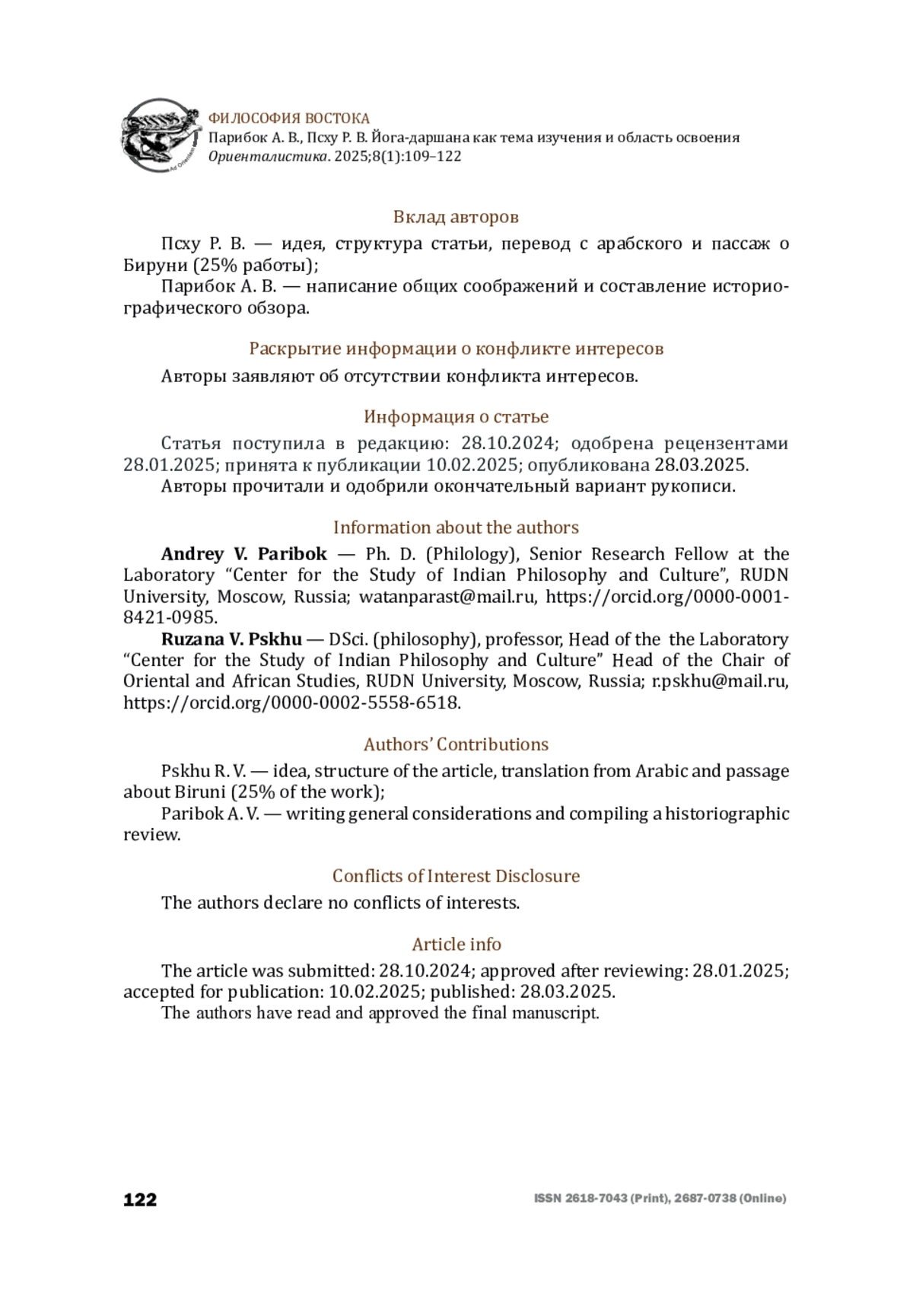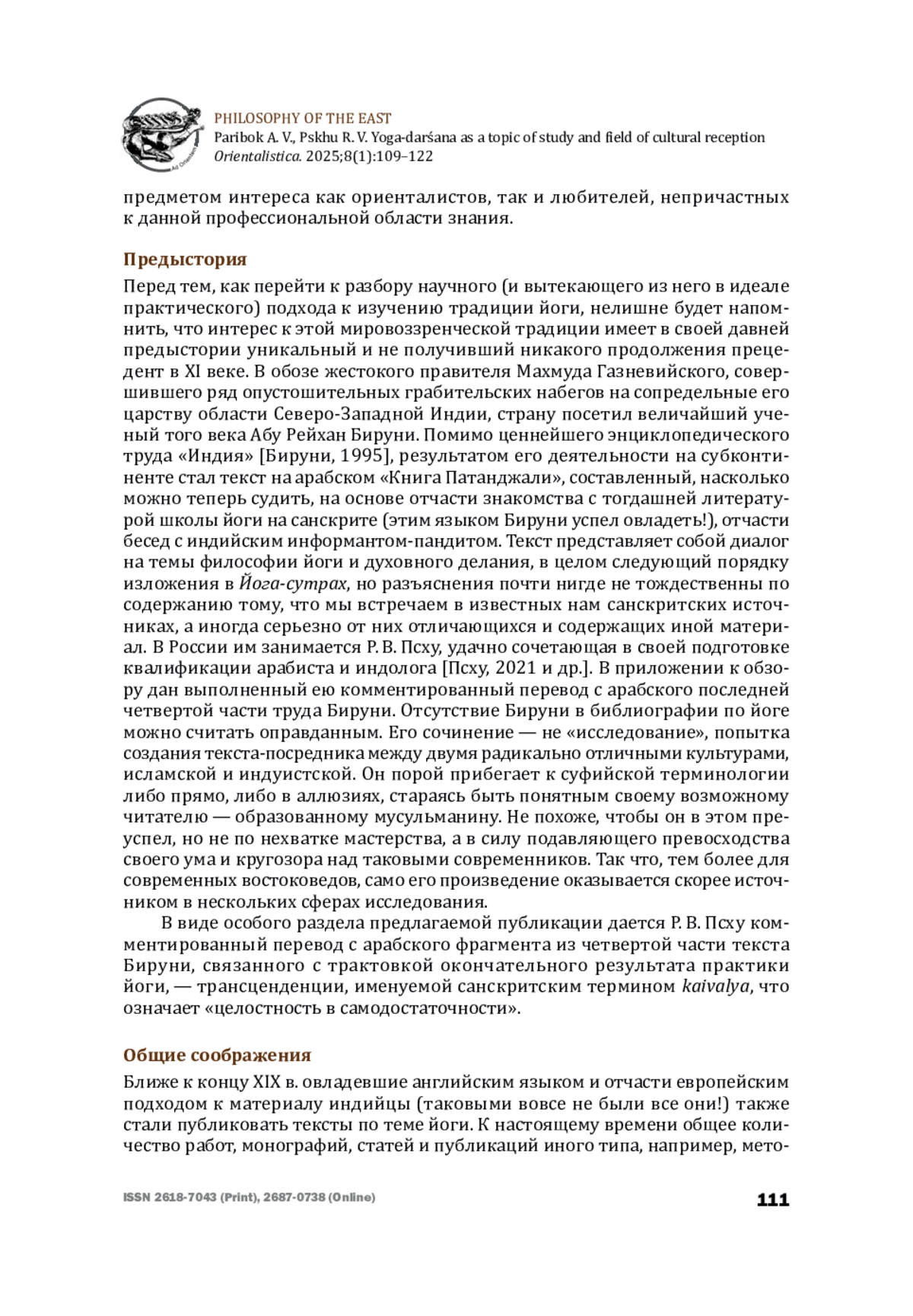 6. Псху Р. В. О Китаб Патанджали ал-Бируни. Вступительная статья к переводу. Ислам в современном мире. 2021;17(2):77-81 [Pskhu R. V. About the al-Bīrūnī’s Kitāb Patañjali. An Introductory article to the Translation. Islam in the Modern World. 2021;17(2):77-81 (in Russian)].