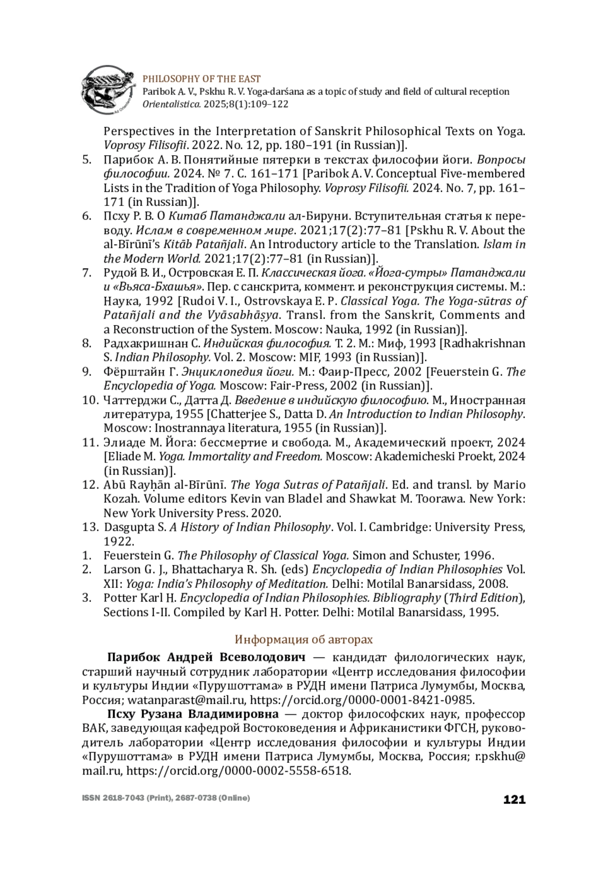 5. Парибок А. В. Понятийные пятерки в текстах философии йоги. Вопросы философии. 2024. № 7. C. 161-171 [Paribok A. V. Conceptual Five-membered Lists in the Tradition of Yoga Philosophy. Voprosy Filisofii. 2024. No. 7, pp. 161-171 (in Russian)].