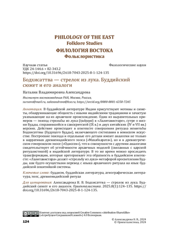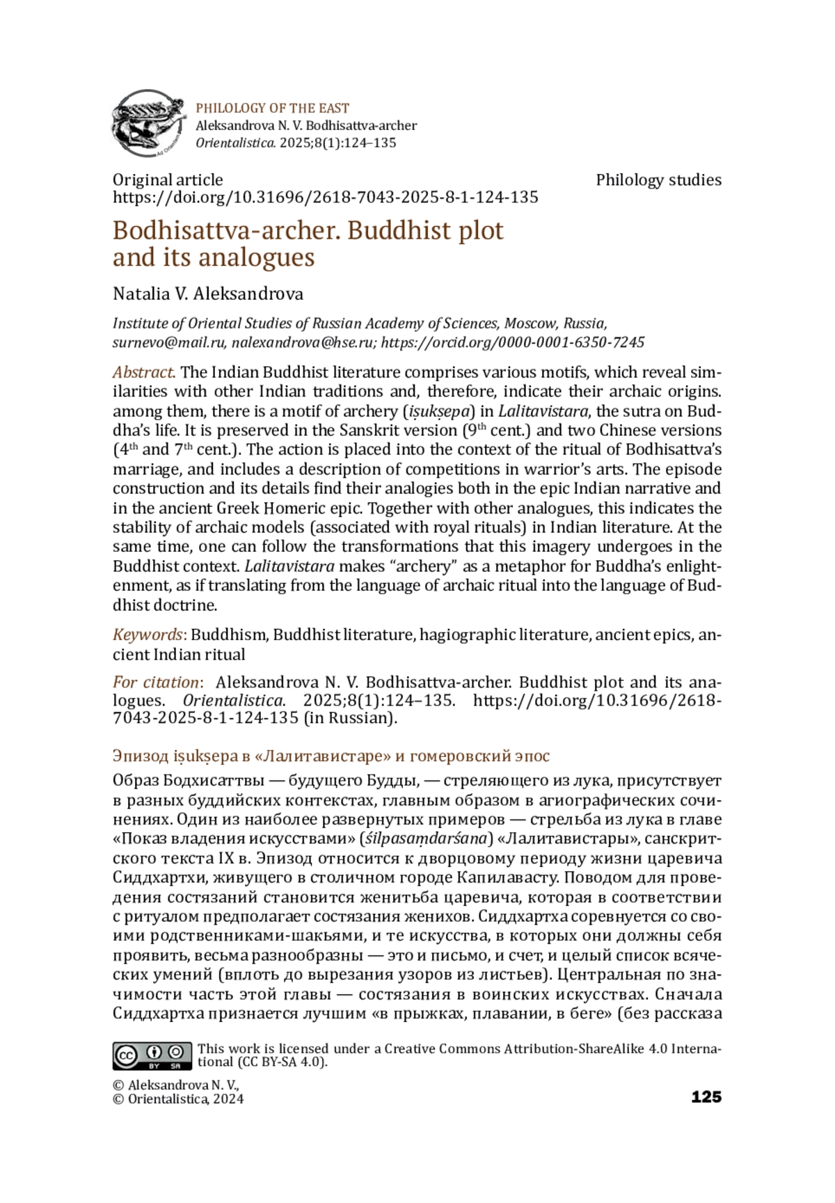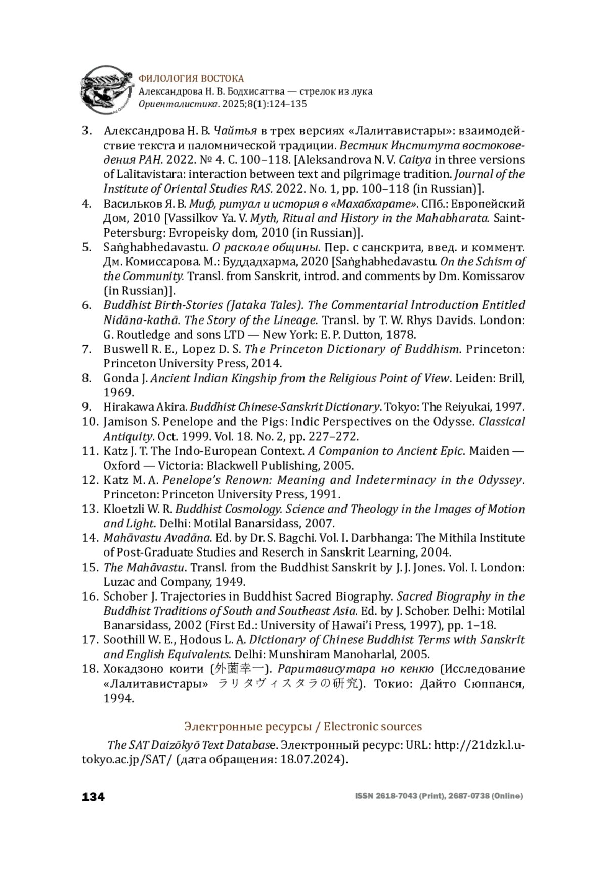 3. Александрова Н. В. Чайтья в трех версиях “Лалитавистары”: взаимодействие текста и паломнической традиции. Вестник Института востоковедения РАН. 2022. № 4. С. 100-118. [Aleksandrova N. V. Caitya in three versionsof Lalitavistara: interaction between text and pilgrimage tradition. Journal of theInstitute of Oriental Studies RAS. 2022. No. 1, pp. 100-118 (in Russian)].