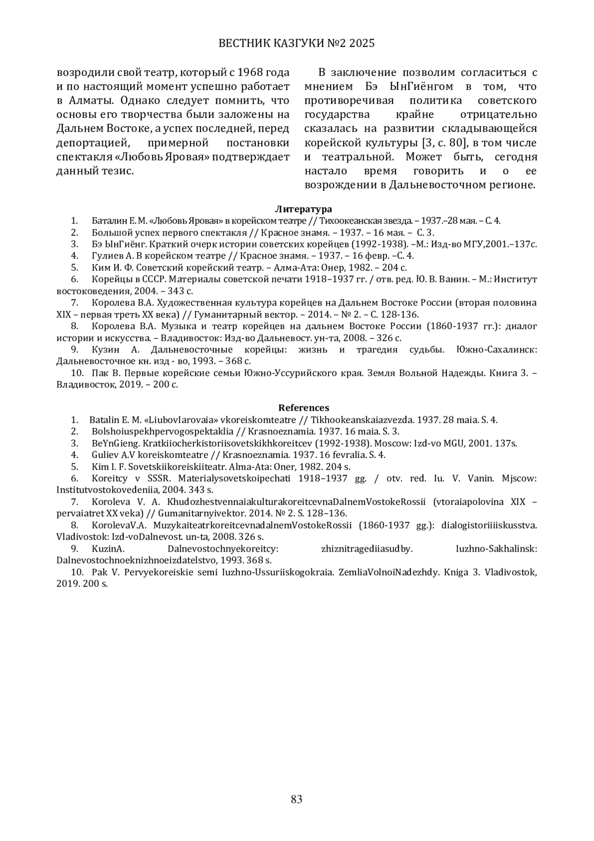 8. Королева В.А. Музыка и театр корейцев на дальнем Востоке России (1860-1937 гг.): диалог истории и искусства. - Владивосток: Изд-во Дальневост. ун-та, 2008. - 326 с. EDN: YUGOCG