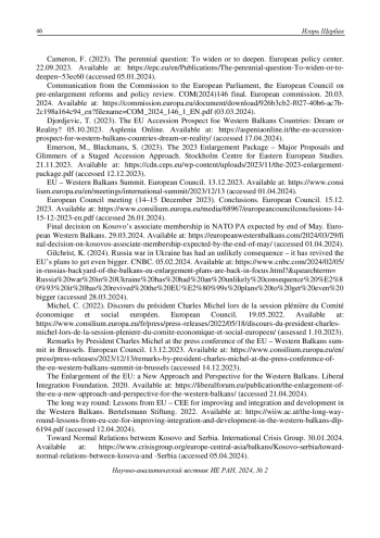 2. Cameron, F. (2023). The perennial question: To widen or to deepen. European policy center. 22.09.2023. Available at: https://epc.eu/en/Publications/The-perennial-question-To-widen-or-to-deepen~53ec60 (accessed 05.01.2024).