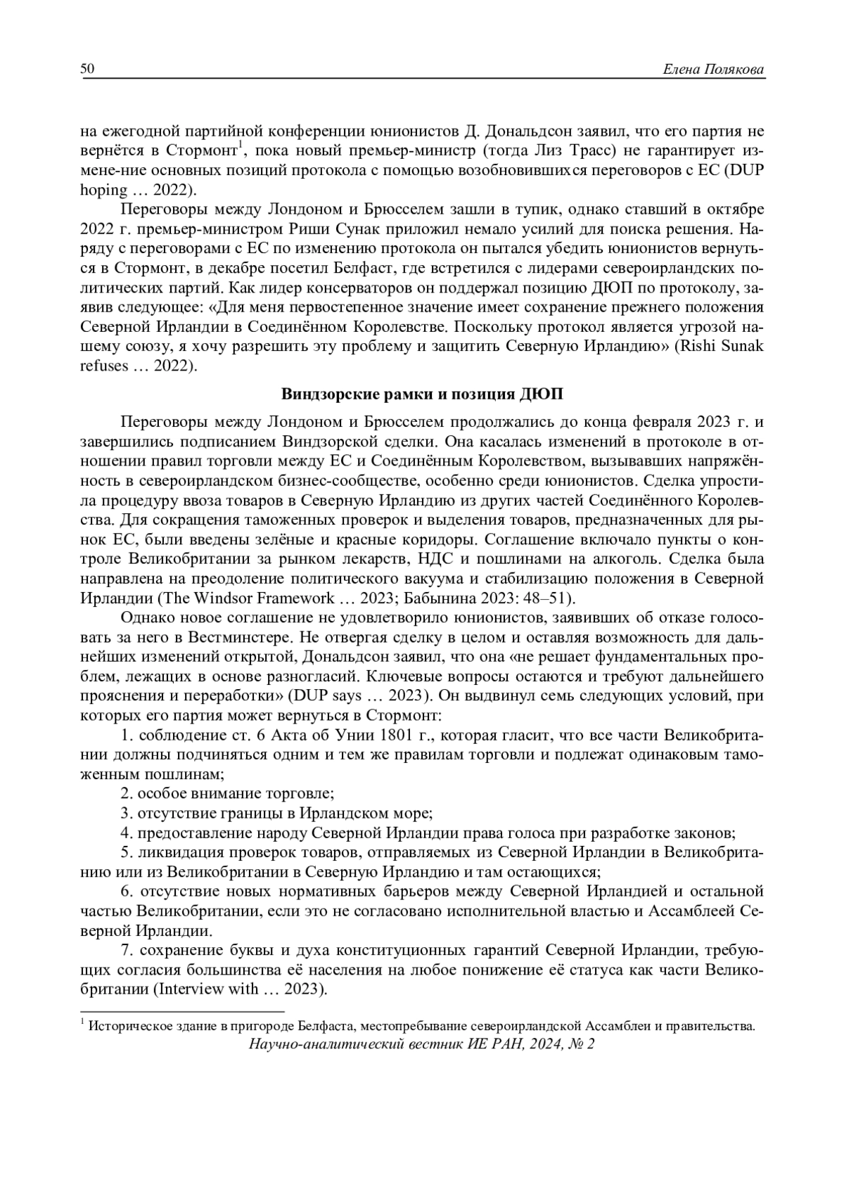 41. Полякова, Е.Ю. (2023). Сейсмические выборы в Северной Ирландии // Британия-2022: смена премьеров, смена монарха. М.: ИЕ РАН. С. 99-108.