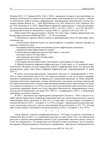 22. Грачева, М.В. (2023b). Планирование федеральных расходов в Германии: точность проектировок // Современная Европа (2): 100-115. EDN: OUTSSZ