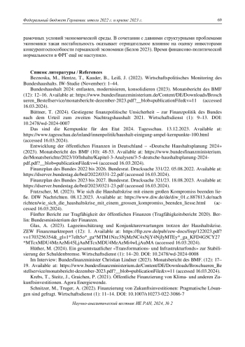21. Грачева, М.В. (2023а). Планирование федеральных расходов в Германии: главные структурные сдвиги // Научно-аналитический вестник ИЕ РАН (1): 148-157. EDN: LBASEE