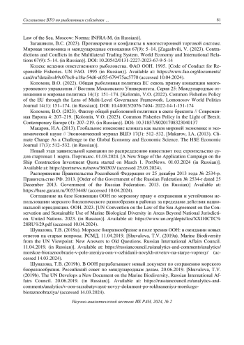 23. Коломин, В.О. (2022). Общая рыболовная политика ЕС сквозь призму концепции многоуровневого управления // Вестник Московского Университета. Серия 25: Международные отношения и мировая политика 14(1): 151-174. EDN: PORNOG