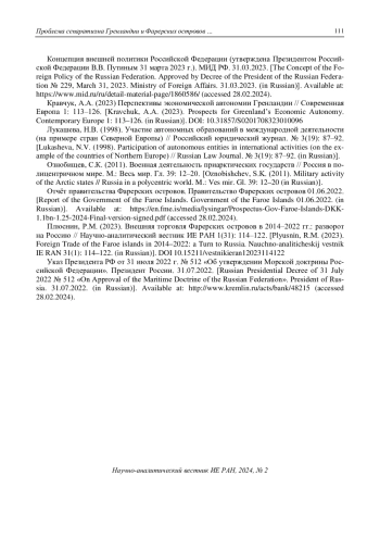 38. Кравчук, А.А. (2023) Перспективы экономической автономии Гренландии // Современная Европа 1: 113-126. EDN: OSGRPE