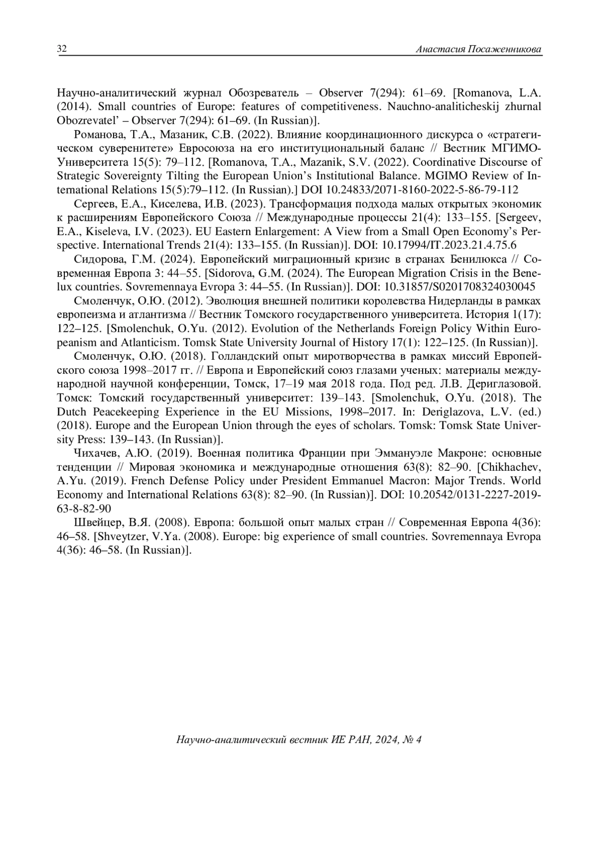 73. Швейцер, В.Я. (2008). Европа: большой опыт малых стран // Современная Европа 4(36): 46-58. EDN: LONXKX