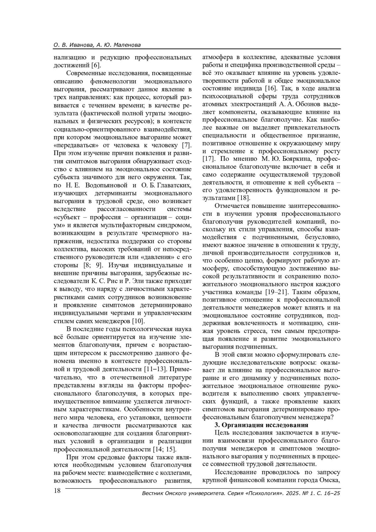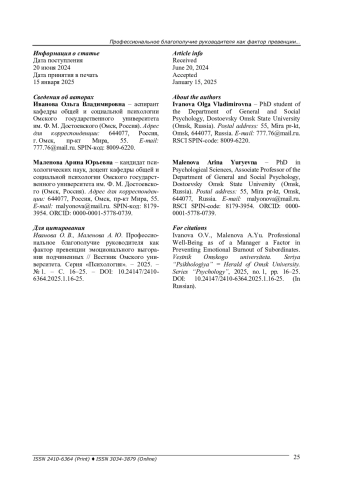 16. Березовская Р. А. Профессиональное благополучие: проблемы и перспективы психологических исследований // Психологические исследования. - 2016. - Т. 9, № 45. - С. 2. -. DOI: 10.54359/ps.v9i45.489 EDN: WAOUXP