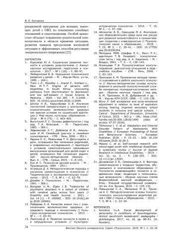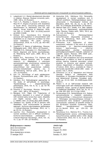 19. Tikhonova I. V. et al. Adaptation and Internal Disorder Pattern of Adolescents With Disabilities // European Proceedings of Social and Behavioural Sciences. - European Publisher, 2020. - P. 15-22. - 10.154 05/epsbs.2020.10.04.3. DOI: 10.15405/epsbs.2020.10.04.3 EDN: FFTWYN