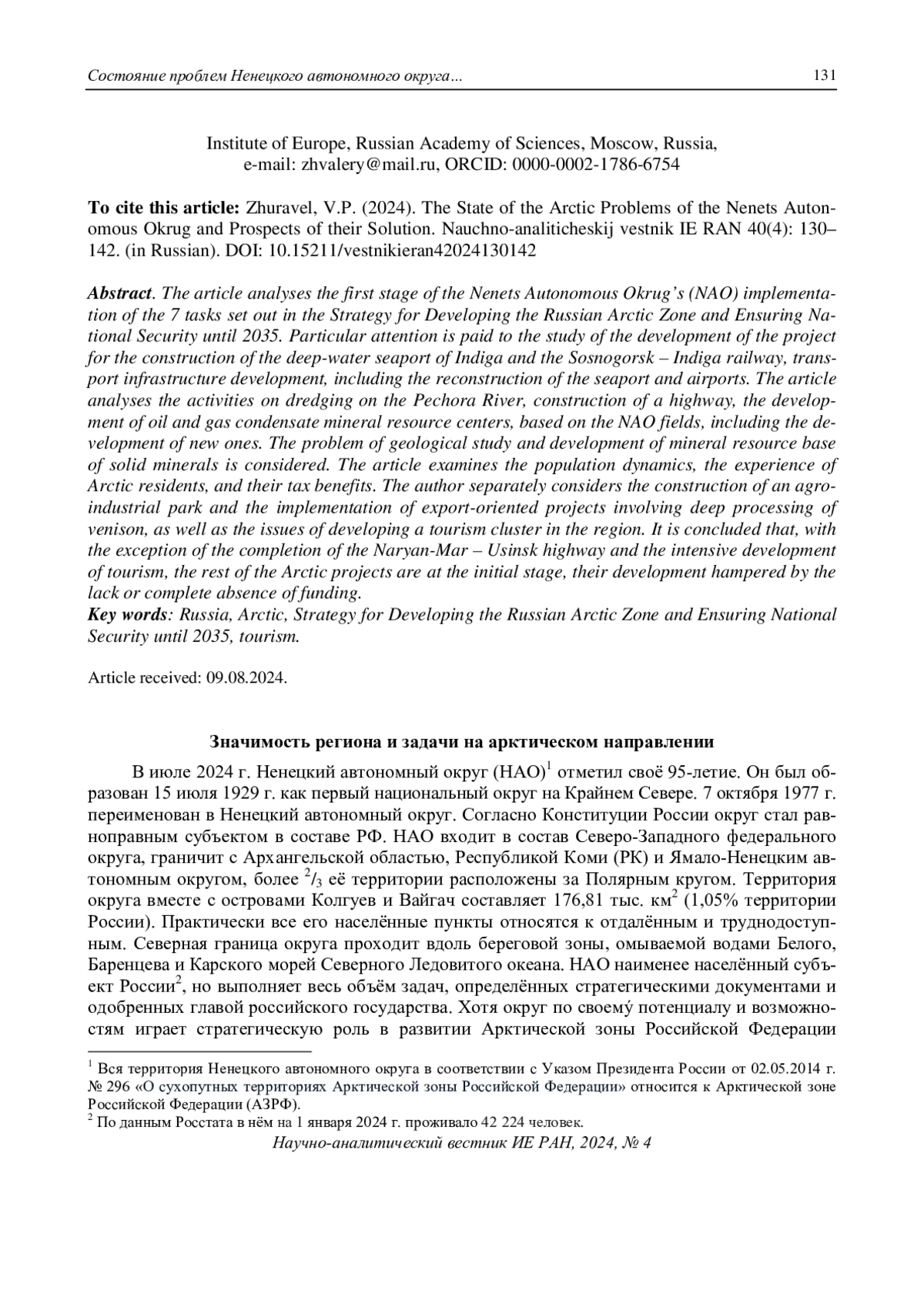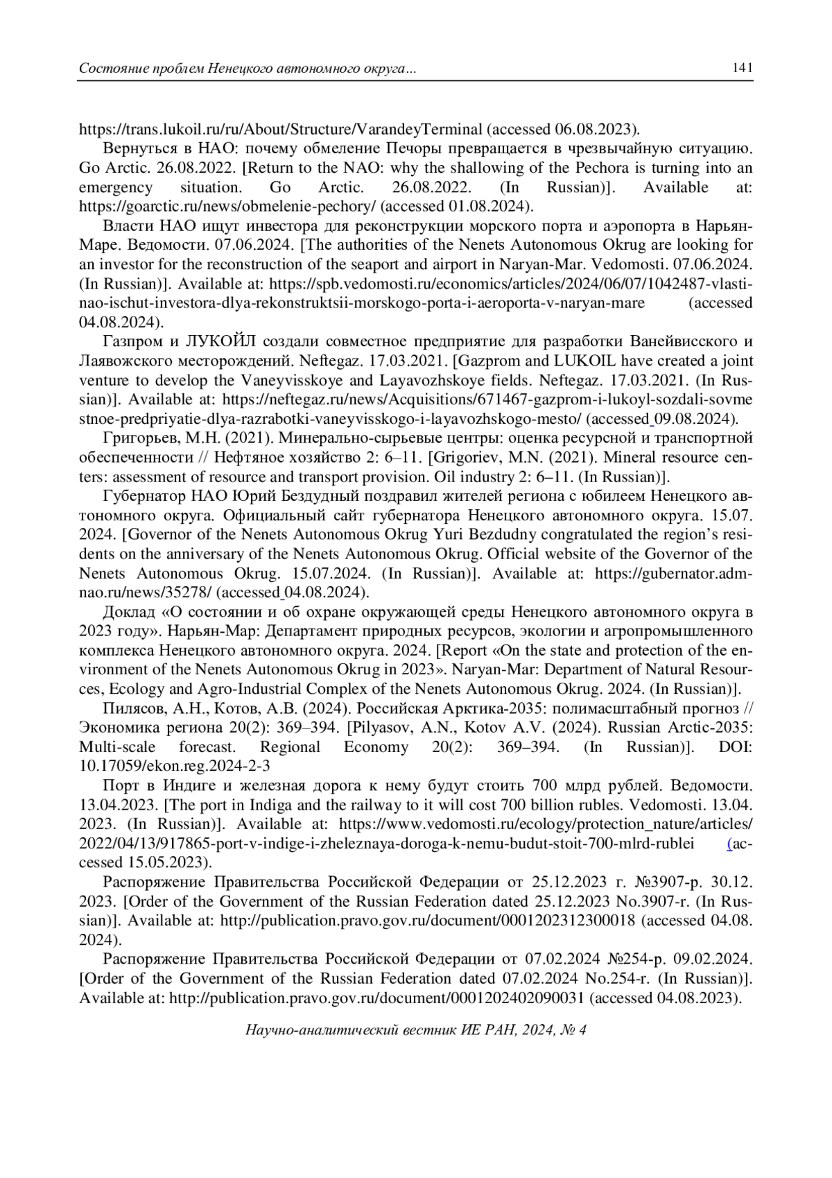 ilyasov, A.N., Kotov A.V. (2024).Russian Arctic-2035: Multi-scale forecast. Regional Economy 20(2): 369-394. (In Russian). DOI: 10.17059/ekon.reg.2024-2-3 EDN: XEPSNM