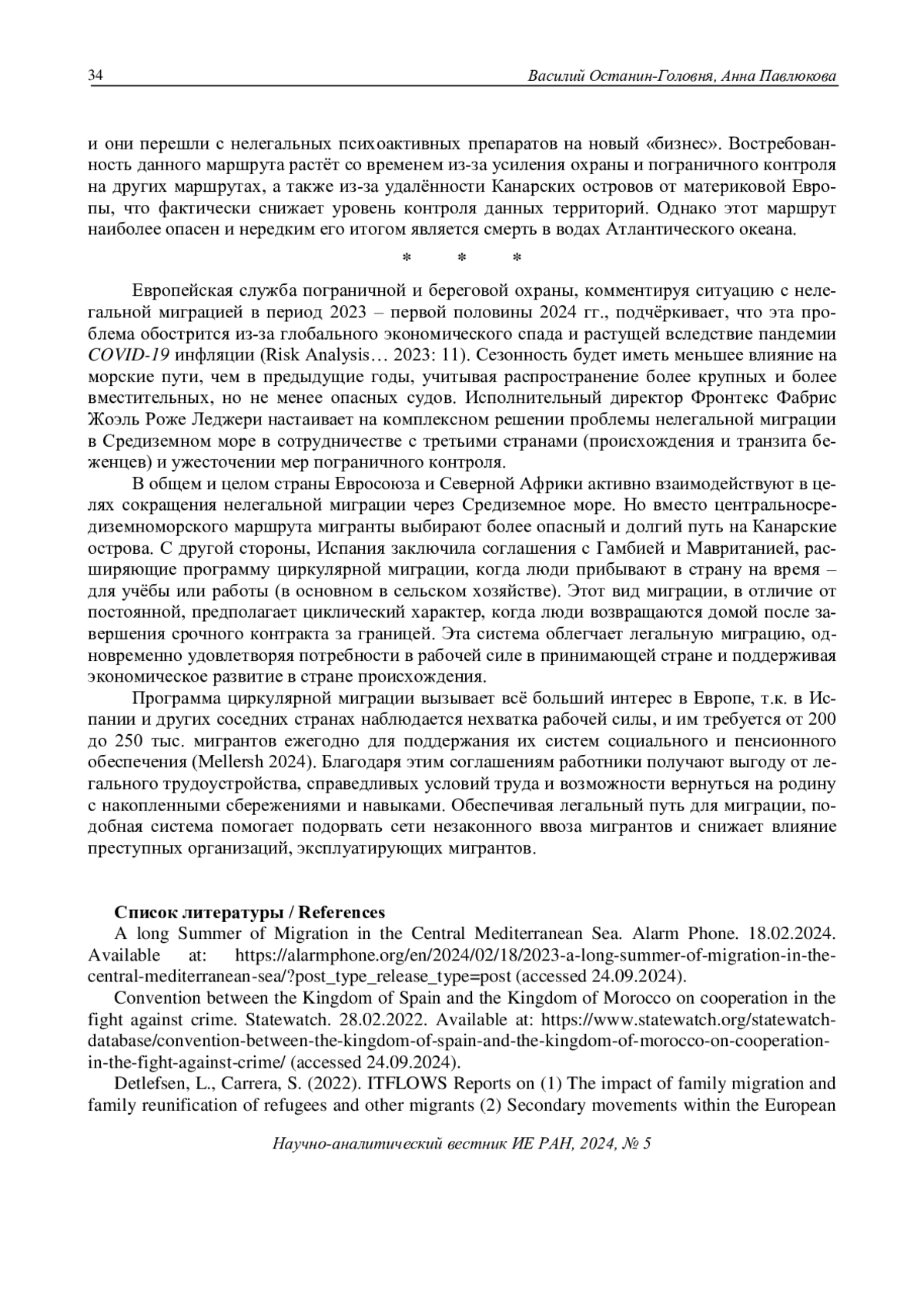 9. MacGregor, M. (2022). Canary Islands: More migrants risk deadly Atlantic route. InfoMigrants. Available at: https://www.infomigrants.net/en/post/39667/canary-islands-more-migrants-risk-deadly-atlantic-route (accessed 24.09.2024).