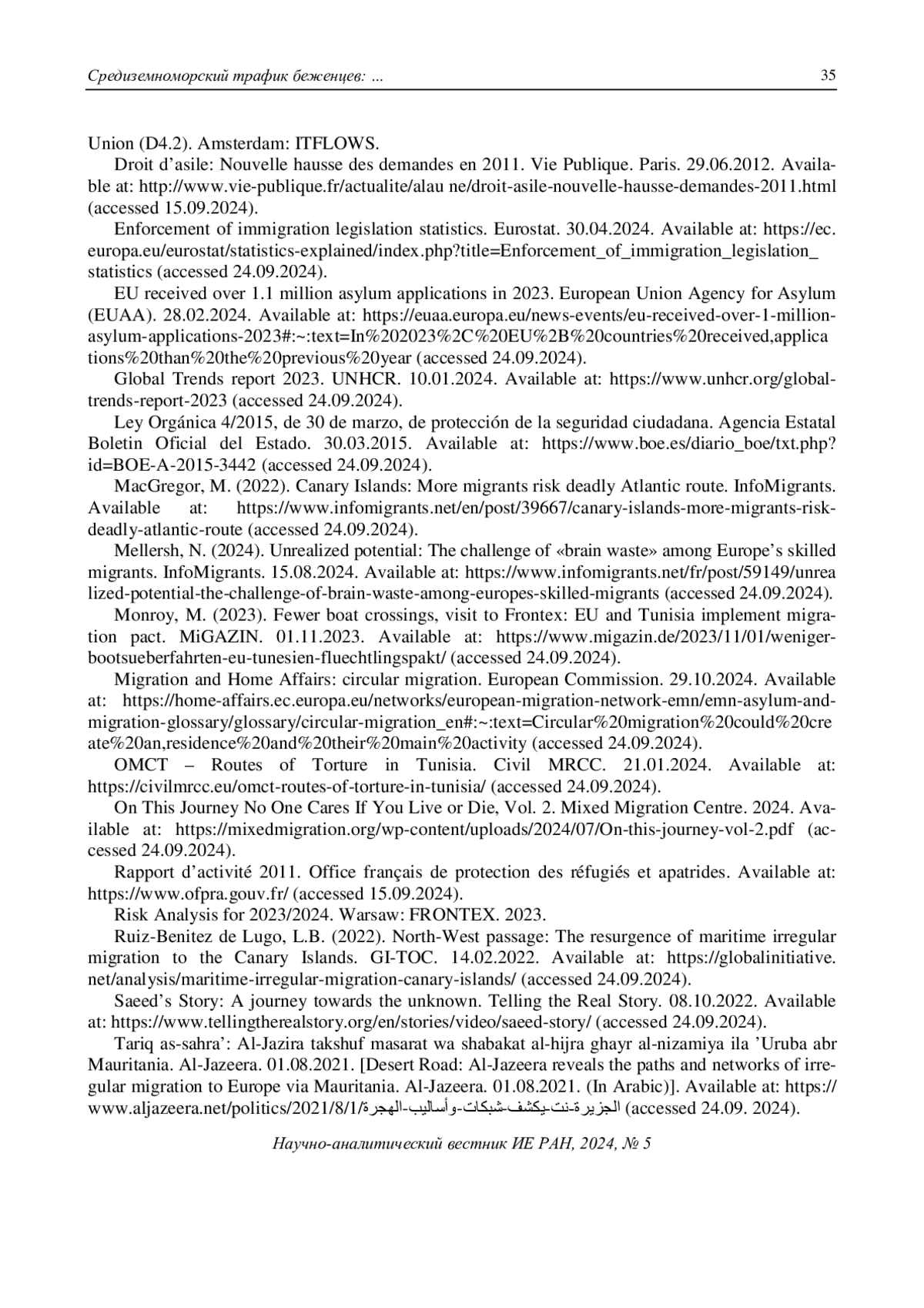 21. West and Central Mediterranean situation. UNHCR. 17.02.2024. Available at: https://reporting.unhcr.org/operational/situations/west-and-central-mediterranean-situation (accessed 24.09.2024).