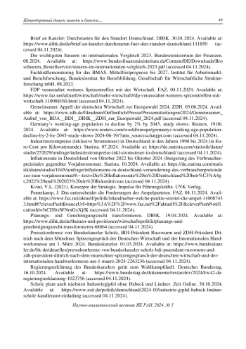 Manukov, S. (2024). Expensive electricity is forcing German companies to relocate. Monocle. 12.08.2024. (In Russian). Available at: https://monocle.ru/2024/08/12/germaniya/(accessed 04.11.2024).