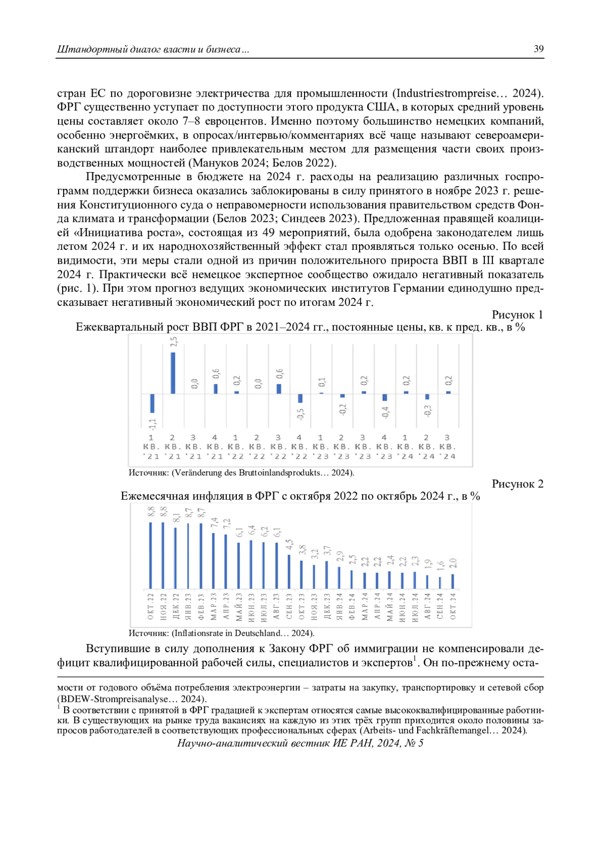 23. Белов, В.Б. (2022). Итоги 2022 г.: экономический штандорт Германии на грани деиндустриализации? // Научно-аналитический вестник ИЕ РАН (6): 70-84. EDN: FUJICI