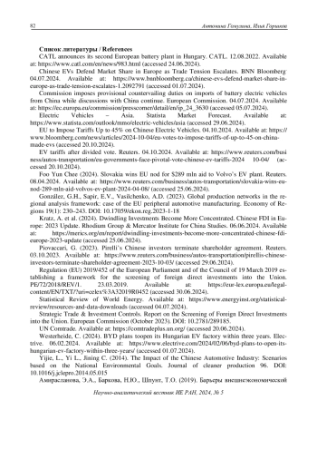 6. EV tariffs after divided vote. Reuters. 04.10.2024. Available at: https://www.reuters.com/business/autos-transportation/eu-governments-face-pivotal-vote-chinese-ev-tariffs-2024 10-04/(accessed 20.10.2024).