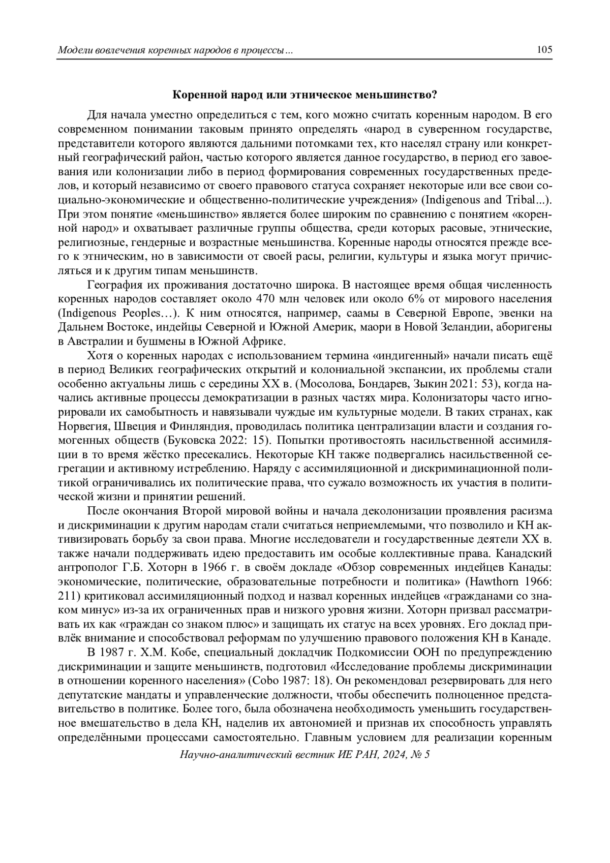 Mosolova, L.M., Bondarev, A.V., Zykin, A.V. (2021). Conceptualization of the concept of “indigenous peoples”: historiography, interpretations. Herald of humanitarian education 4(24): 50-59. (In Russian).
