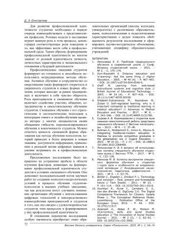 17. Налиткина О. В. Цифровизация высшего образования с позиции формирования у студентов основ профессиональной идентичности // Журнал правовых и экономических исследований. - 2024. - № 1. - С. 335-341. EDN: YEZTBQ