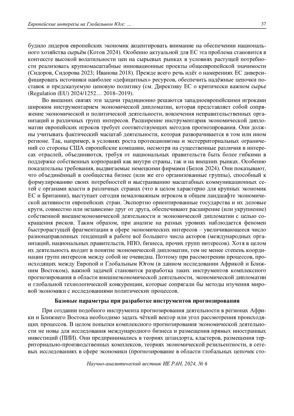 Kotov, A.V. (2024b). Ensuring raw material sovereignty as a problematic field of economic policy of the European Union. Scientific works of the VEO of Russia 4(248): 229-241. (In Russian). DOI: 10.38197/2072-2060-2024-248-4-229-240