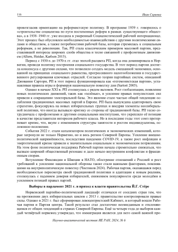 30. Чистиков, М.Н. (2024). Партийно-политическая динамика в Норвегии как фактор российско-норвежских отношений // Полис. Политические исследования (4): 38-55. EDN: WBFXOQ