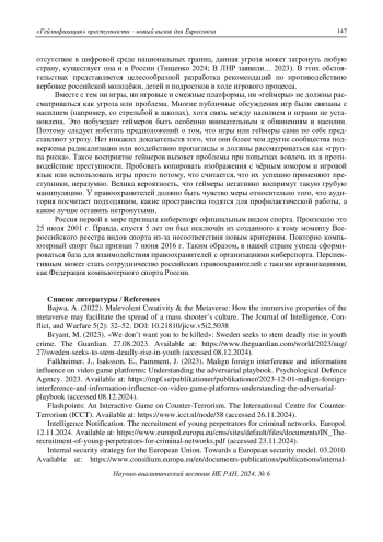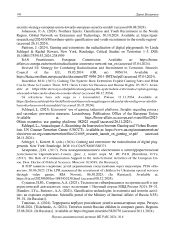 14. Schlegel, L., Amarasingam A. Examining the Intersection between Gaming and Violent Extremism. UN Counter-Terrorism Centre (UNCCT). Available at: https://www.un.org/counterterrorism/sites/www.un.org.counterterrorism/files/221005_research_launch_on_gaming_ve.pdf (accessed 26.11.2024).