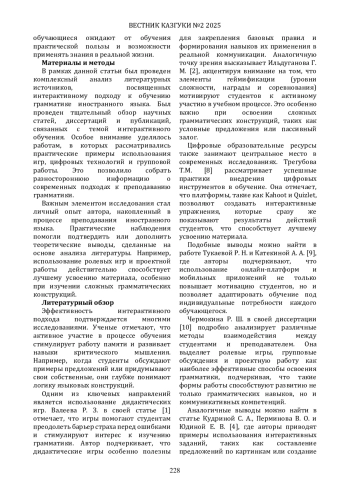 6. Рожнова Е.А., Симакова С.М. Интерактивные формы работы при обучении студентов грамматической стороне речи // Педагогический вестник. - 2019. - №6. - URL: https://cyberleninka.ru/article/n/interaktivnye-formy-raboty-pri-obuchenii-studentov-grammaticheskoy-storone-rechi (дата обращения: 10.04.2025).