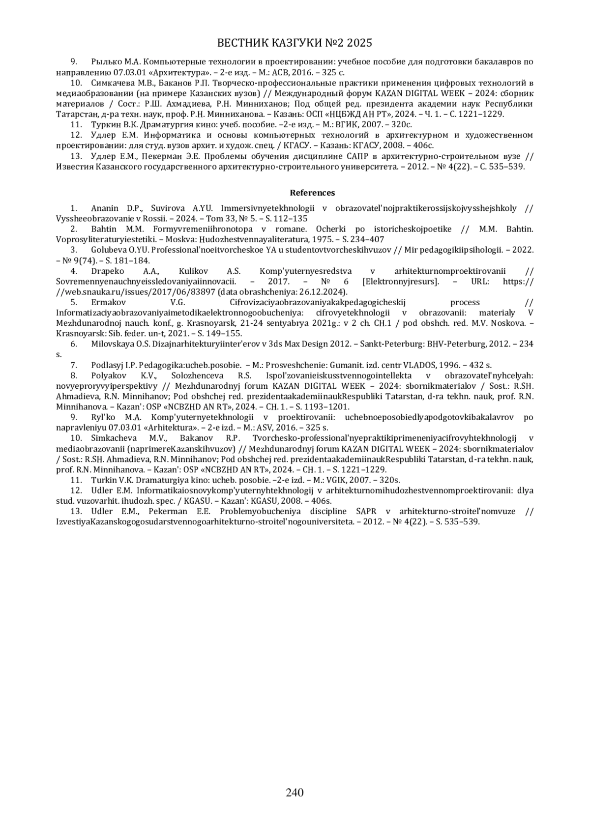 10. Симкачева М.В., Баканов Р.П. Творческо-профессиональные практики применения цифровых технологий в медиаобразовании (на примере Казанских вузов) // Международный форум KAZAN DIGITAL WEEK - 2024: сборник материалов / Сост.: Р.Ш. Ахмадиева, Р.Н. Минниханов; Под общей ред. президента академии наук Республики Татарстан, д-ра техн. наук, проф. Р.Н. Минниханова. - Казань: ОСП “НЦБЖД АН РТ”, 2024. - Ч. 1. - С. 1221-1229. EDN: XWITER
