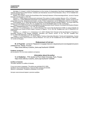 3. Волегов В. С., Сомхишвили К. О. Воспроизводство педагогических кадров в системе общего образования: тенденции и противоречия // Вестник Тюменского государственного университета. Социально-экономические и правовые исследования. 2024. Т. 10, № 1 (37). С. 24-38. DOI: 10.21684/2411-7897-2024-10-1-24-38 EDN: BMAIEM