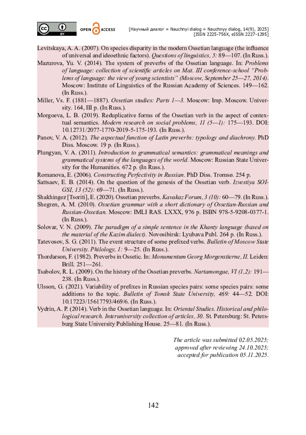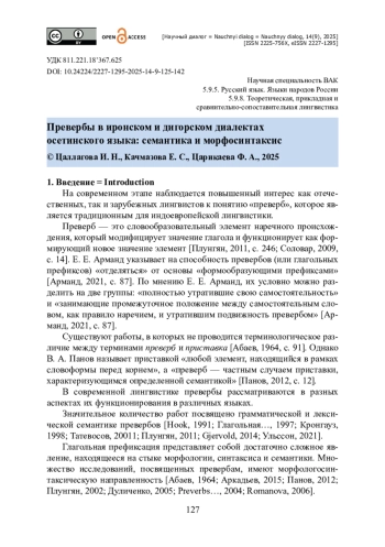 27. Шахингёз [Цорити] Э. Осетинские превербы / Э. Шахингёз [Цорити] // Каваказ-форум. - 2020. - Выпуск 3 (10). - С. 60-79.