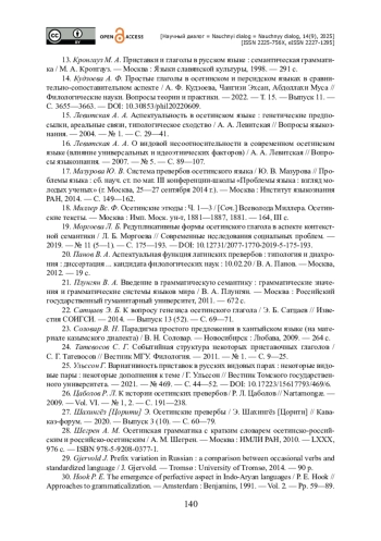 16. Левитская А. А. О видовой несоотносительности в современном осетинском языке (влияние универсальных и идеоэтнических факторов) / А. А. Левитская // Вопросы языкознания. - 2007. - № 5. - С. 89-107.