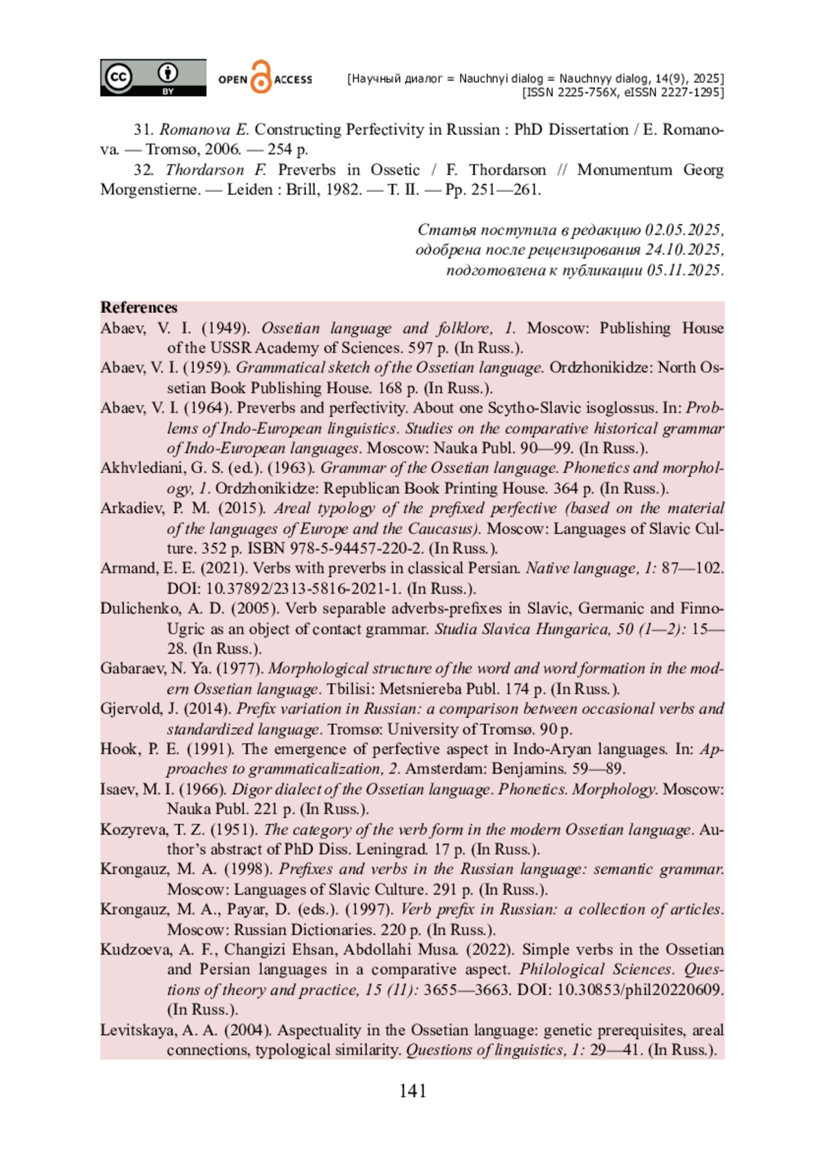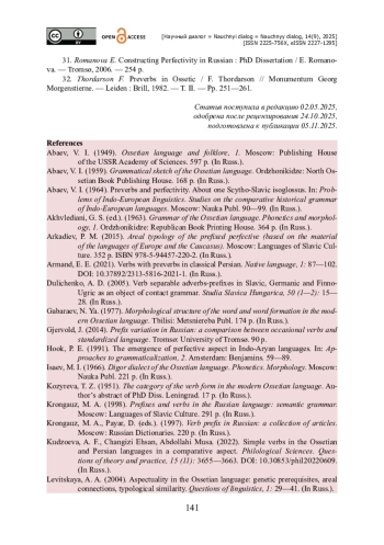 32. Thordarson F. Preverbs in Ossetic / F. Thordarson // Monumentum Georg Morgenstierne. - Leiden : Brill, 1982. - T. II. - Pp. 251-261.