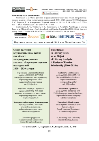 32. Горбовская С. Г. Образ-имаго «цветов зла» : от Ш. Бодлера к Ж.-К. Гюисмансу / С. Г. Горбовская // Слово.ру : балтийский акцент. - 2024. - Т. 15. - № 3. - С. 39-54. - https://doi.org/10.58282/colloques.869.