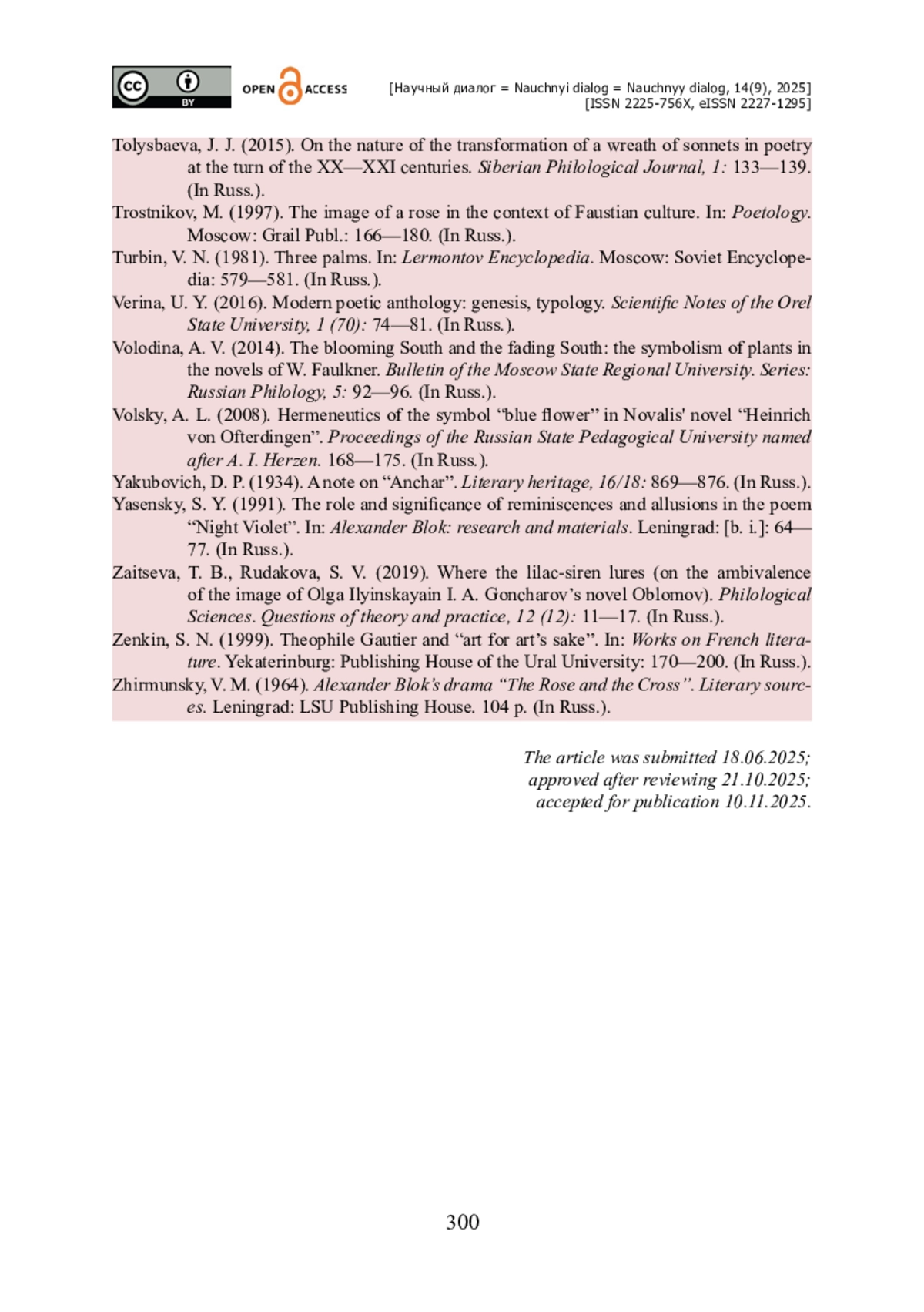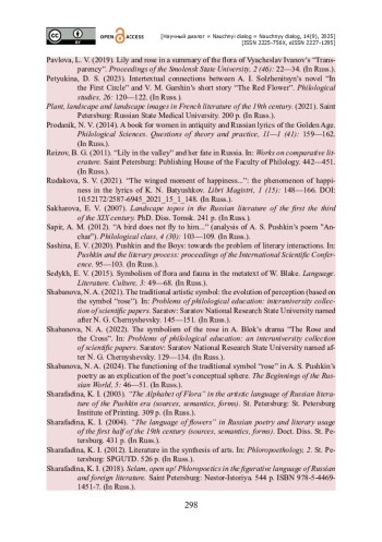 71. Павлова Л. В. Лилия и роза в конспекте флоры “Прозрачности” Вячеслава Иванова / Л. В. Павлова // Известия Смоленского государственного университета. - 2019. - № 2 (46). - С. 22-34.
