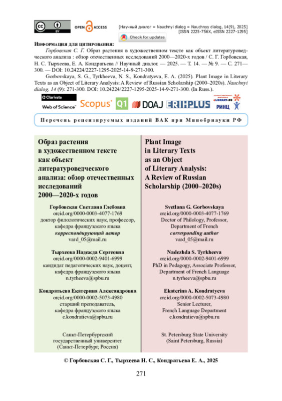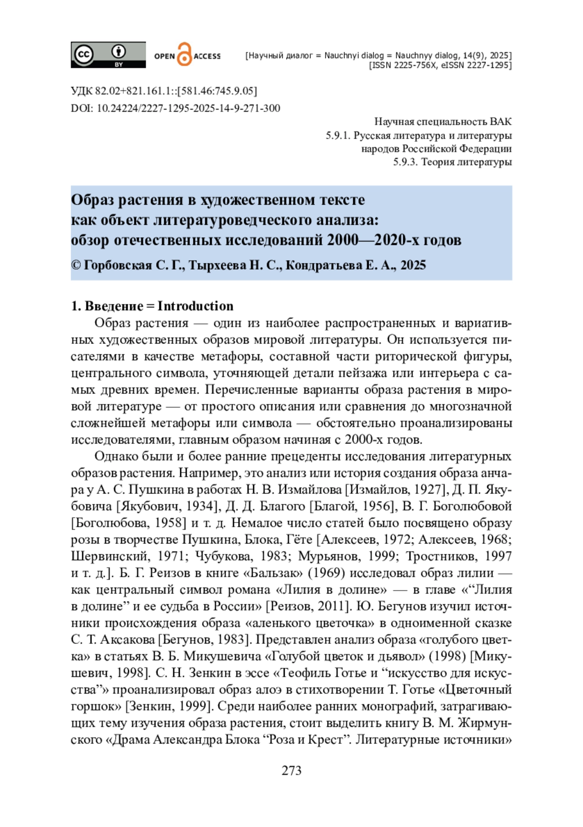 30. Горбовская С. Г. Имагопоэтологическая энциклопедия авторских литературных образов. Флора / С. Г. Горбовская, О. Л. Бейнарович, Д. Д. Старкова. - Санкт-Петербург : Изд-во СПбГУ, 2024. - 519 с. - ISBN 978-5-288-05746-5.