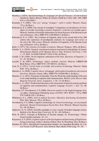 42. Humbley J. Socioterminology / J. Humbley // Languages for Special Purposes : An International Handbook / еds. J. Humbley, G. Budin, C. Lauren. - Berlin ; Boston : Walter de Gruyter GmbH & Co KG, 2018. - Рp. 469-488. - ISBN 978-3-1102-2800-7.