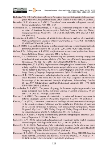 23. Khramchenko D. S. The power of synergy in discourse : exploring persuasive language in English mass media / D. S. Khramchenko // Indonesian Journal of Applied Linguistics. - 2023. - Vol. 13. - № 2. - Pp. 368-379. - https://doi.org/10.17509/ijal.v13i2.63068.
