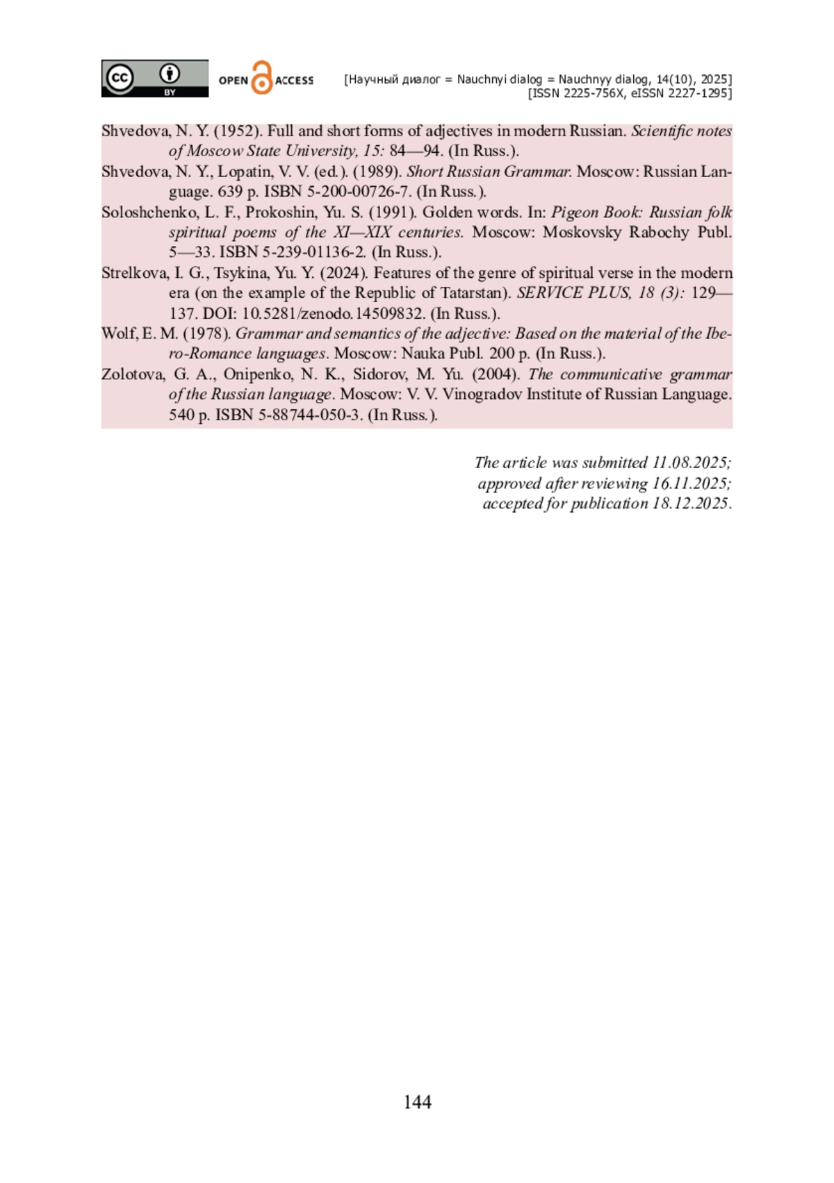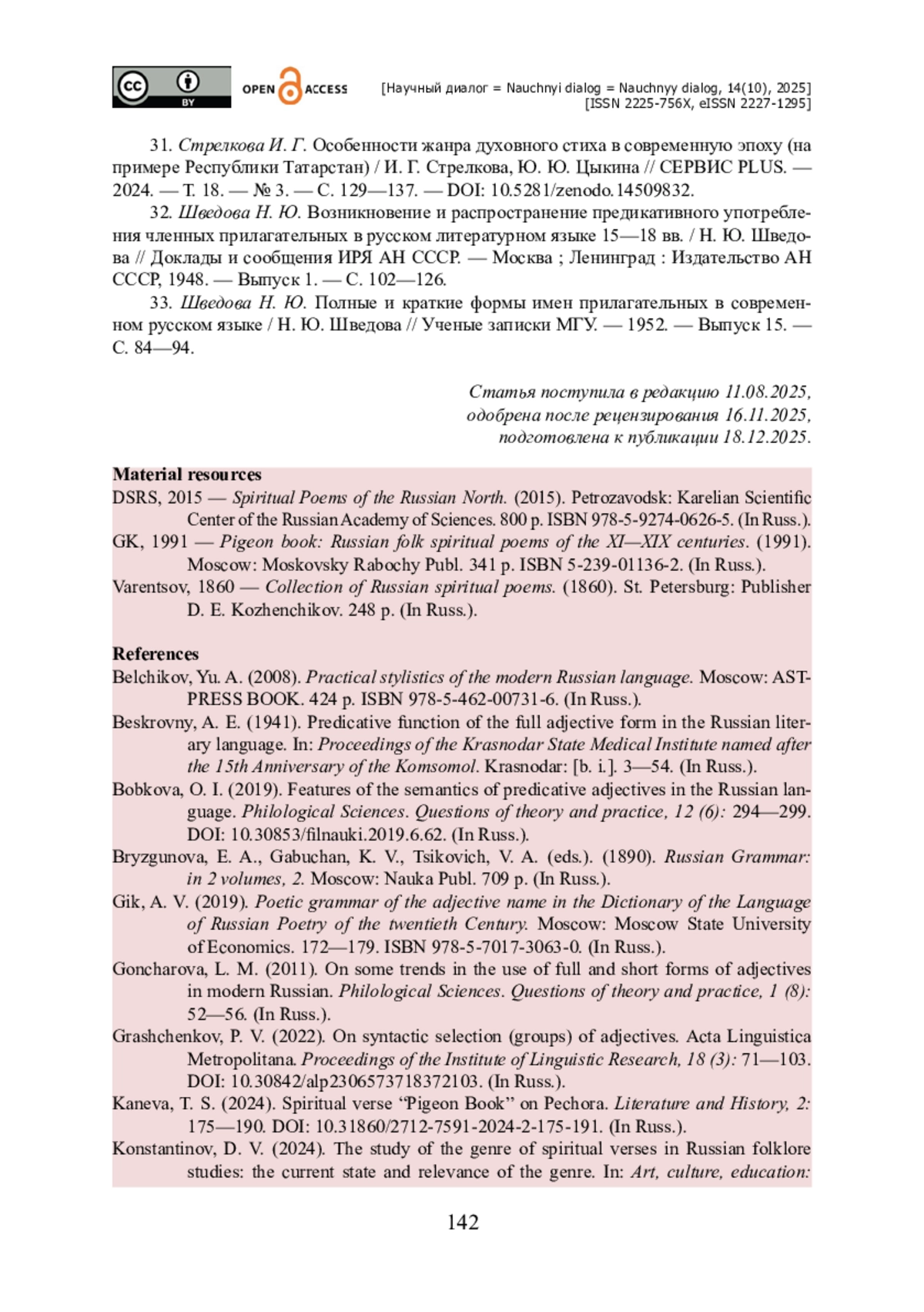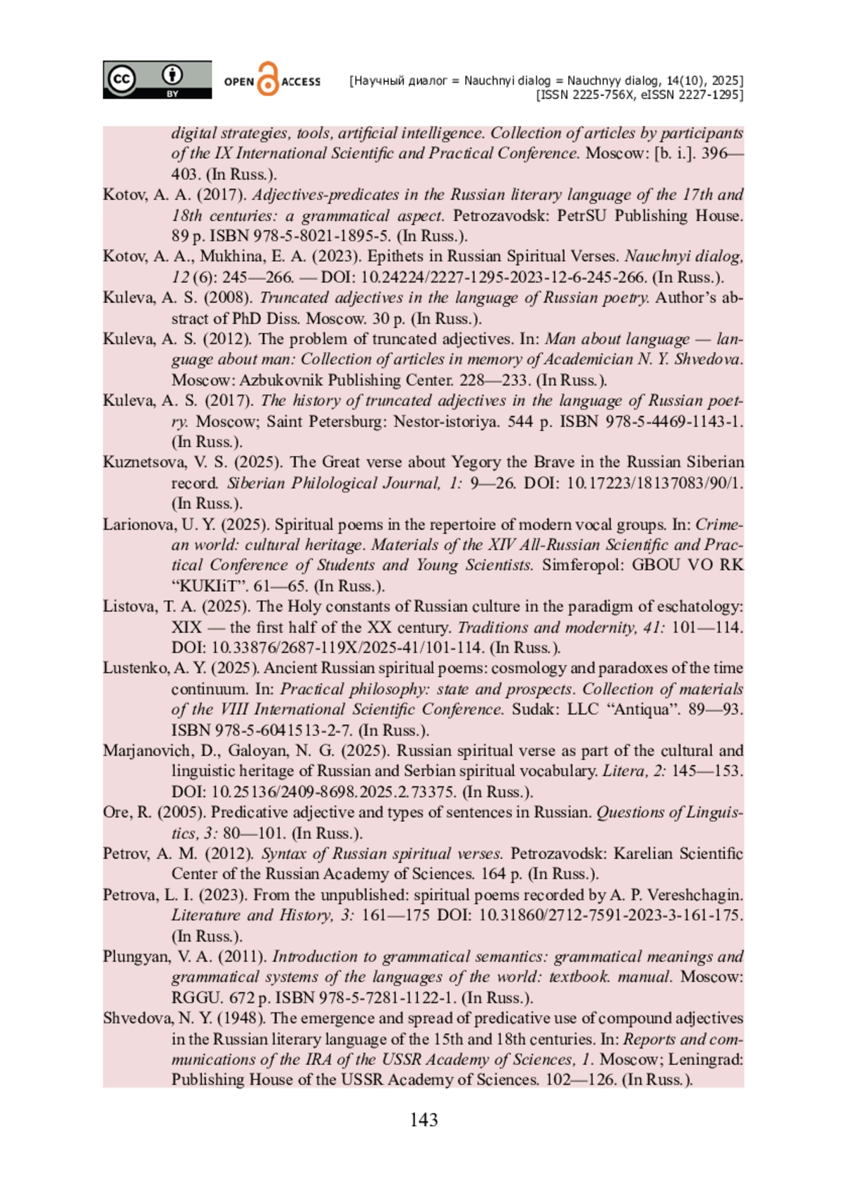 14. Кузнецова В. С. Большой стих о Егории Храбром в русской сибирской записи / В. С. Кузнецова // Сибирский филологический журнал. - 2025. - № 1. - С. 9-26. - https://doi.org/10.17223/18137083/90/1.